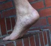 Bei Achillessehnenproblemen sollten Sie einbeinig an einer Treppenstufe auf die Zehenspitze gehen. Halten Sie diese Position 2s, dann senken Sie die Ferse zu Boden, halten diese Position ebenfalls 2s und gehen wieder in den Zehenspitzenstand als Kombination eines exzentrischen (Abwärtsbewegung) und eines konzentrischen (Aufwärtsbewegung) Trainings. In Studien sind 6x15 Wiederholungen täglich als effektiv beschrieben, bei weniger Wiederholungen gibt es vermutlich wenig bis keinen Trainingseffekt nach 12 Wochen.